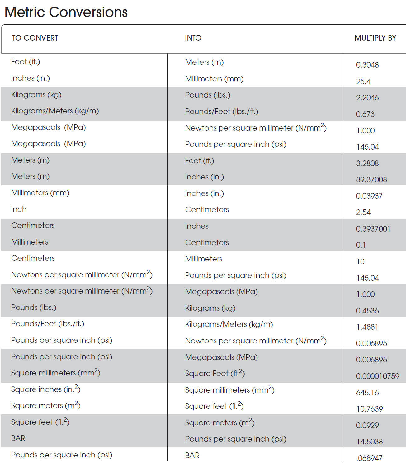Conversion Tables